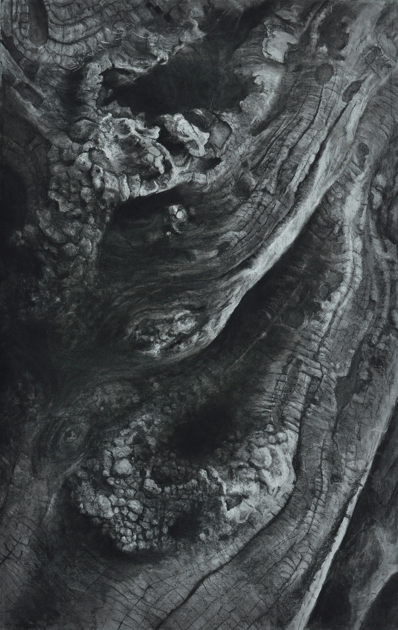 Tijdens haar artist-in-residence in Zundert maakte Sabina Timmermans veel wandeltochten, observeerde de natuur aandachtig en liet zich inspireren door de boomwortels van oude beuken. In haar tekeningen verbeeldt ze deze als lichamen, gevormd door hun levenslange interactie en verstrengeling met hun omgeving; hun strijd om leven en dood.